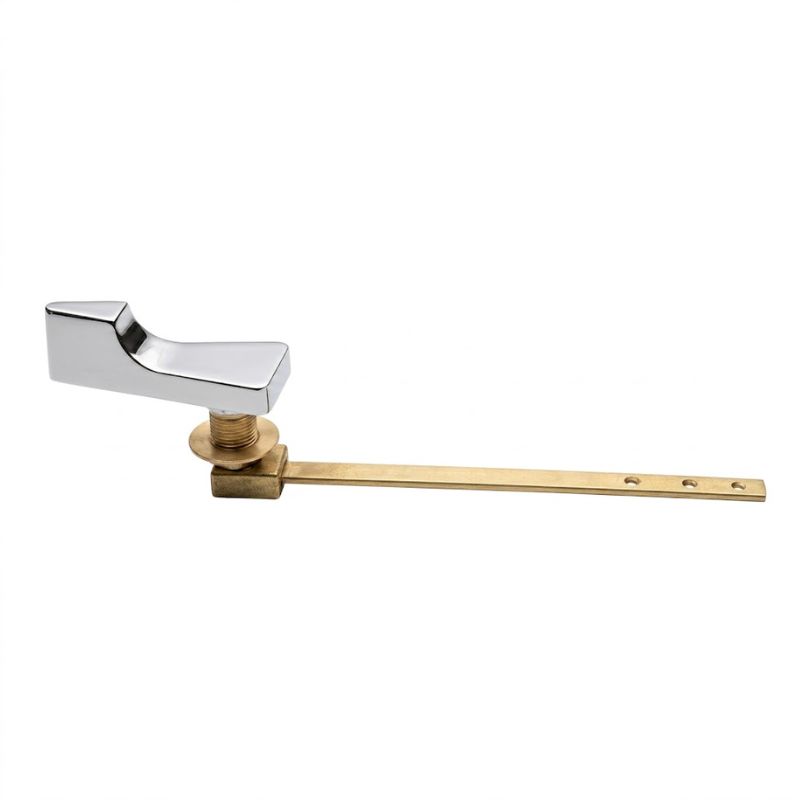 Repuesto de manija fabricado en bronce macizo, diseñado para depósitos de inodoro tipo mochila de la marca Ferrum. Permite accionar el mecanismo de descarga de manera firme, precisa y con una vida útil muy superior a las versiones plásticas.