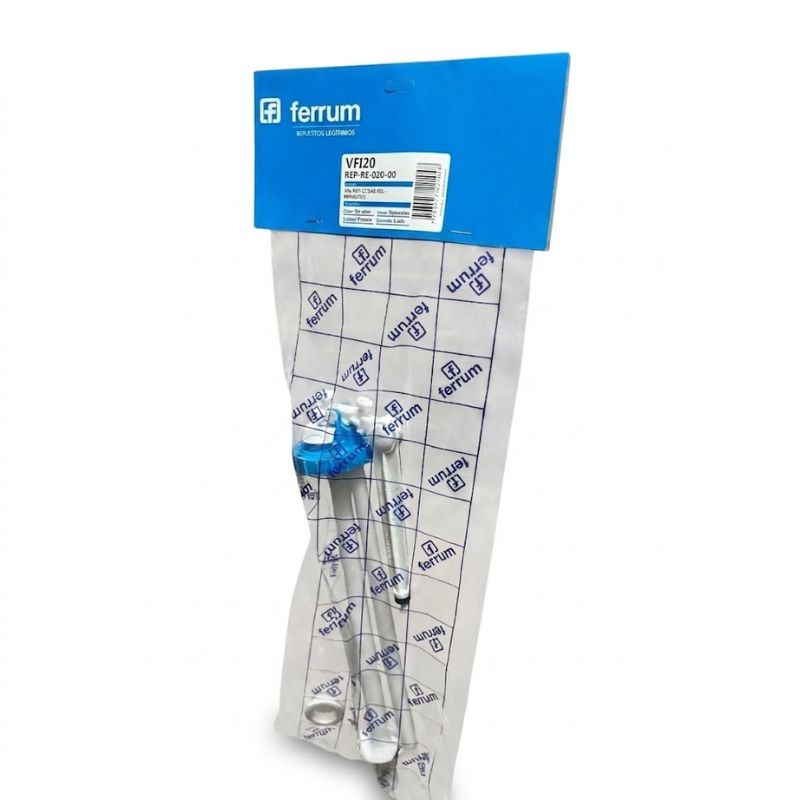 Válvula de entrada de agua, original Ferrum, diseñada para depósitos de inodoro tipo mochila. Regula automáticamente el ingreso de agua y realiza el corte al alcanzar el nivel adecuado, garantizando un llenado eficiente y sin pérdidas.